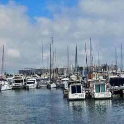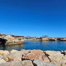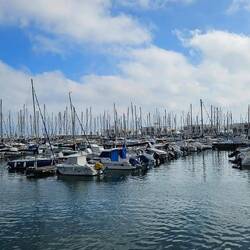 Heute geht's in die andere Richtung. Viele Steine und ein großer Yachthafen. Da waren schon schöne Böötchen 🚤 dabei. Irgendwo in den Felsen wohnt, oder wohnte jemand....