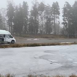 Es hat ganz gut gefroren. Die Natur ist leicht weiß verfroren ❄️😁. Herrlich klare Luft. Die Nacht war ruhig, der ÜP zweckmäßig, wir hatten gestern Abend keine Lust mehr weit zu fahren.Leia mais