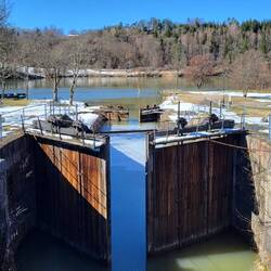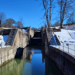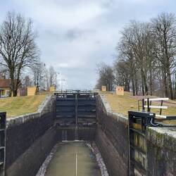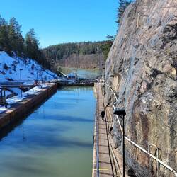 Der ganze Kanal, zwischen Göteborg und Vänersborg ist 82 km lang, hat sechs Schleusen und überwindet einen Höhenunterschied von 44 m. Er ist für Schiffe bis 89 m LängeLeia mais