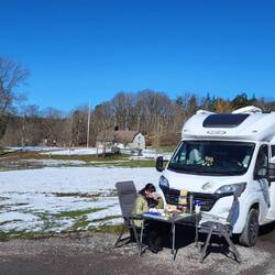 Wir stehen auf einem schönen SP hier am Vättern...👍🏻100SEK inkl. Strom....ein Schnäppchen...