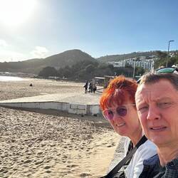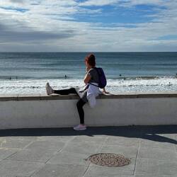 Vi nåede en vandretur på stranden inden vi tjekkede ud, og begav os ud på en stejl tur mod busstoppestedet. Bussen var nærmest fuld, og vi sad på bagsædet med vores kufferter.