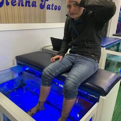 Drengene brugte natten til at drikke sig i hegnet, og chefen var stadig ikke helt frisk, så det blev en meget stille dag. Aftenens fjollede højdepunkt vi wellness-fisk, som kælede for vores fødder.