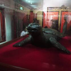 Really cute temple in the middle of a lake, we visited in the evening when it was lit up beautifully. They had the preserved bodies of two large turtles on display as well, these lived in the lake andもっと詳しく