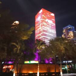 A really fun light show on the bay water, it started just after the sun had gone down and the high rise buildings lit up around the area.