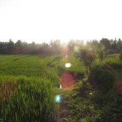 At dusk the light was beautiful against the bright green of the crops, and other people had the idea to watch the sun going down in the area too. We found a cute warung for a drink and enjoyed the surroundings, and when it got dark we walked the remainder of the trail getting to spot fire flies across the fields - magical 😍