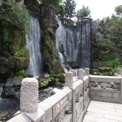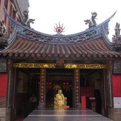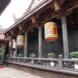 Large temple in the middle of the city with a beautiful waterfall outside and huge lanterns hanging along the side. It was very busy with people praying, by this time we were a bit templed out againLeggi altro