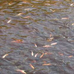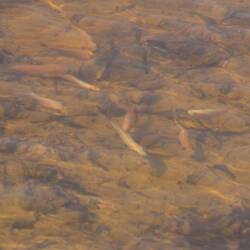 Beautiful lake on the mountain, there were lots of fish you could feed by walking out on the pontoon.