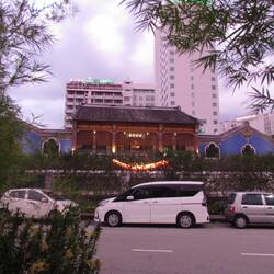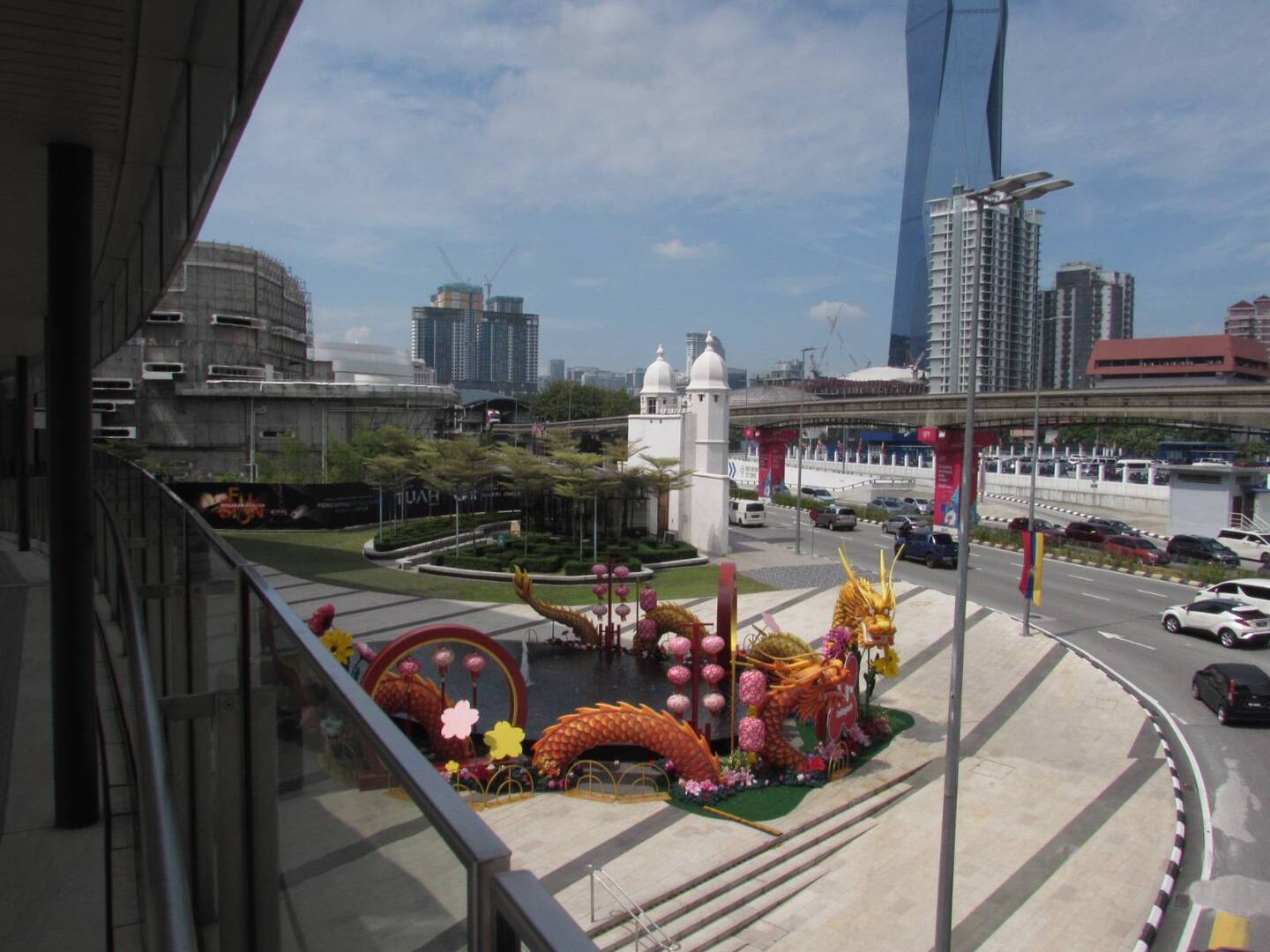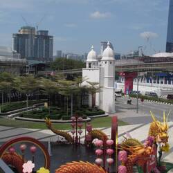 Lavish Chinese building close to the monorail, with the tallest building in South East Asia in the background there was a fun contrast!