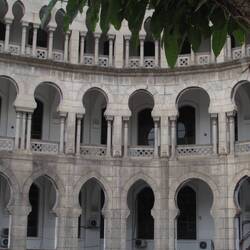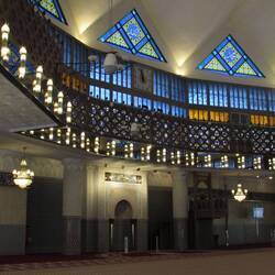 A new experience for us to visit a mosque, especially this size. We had to don some robes to be allowed inside, and found expansive rooms which would accommodate hundreds of worshippers. Decoration was mostly plain, with the central room being illuminated by the colourful glass windows.