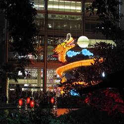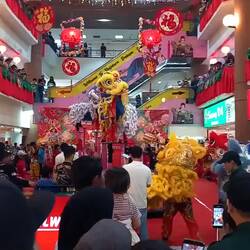 We got to witness a couple more surprise (to us) dragon dances, and mostly ate at a vegetarian restaurant that served delicious laksa and char sui fried rice- yummy!Læs mere