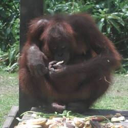 We stayed until almost closing time at lunch, and got to watch the orangutans as the park quietened as they played and snacked together.
