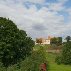 Wir haben Lettland heute morgen verlassen und uns auf unserer Tagesetappe, nach rund 150 km, die Deutschordensburg in Bauska angeschaut. Der Komplex (Bauskas Pils) besteht aus einer Burgruine und einem Renaissanceschloss. Die Anlage liegt zwischen den Flüssen Mūša und Mēmele am Rand des Stadtzentrums. Typisch für Ordensburgen ist die Bauweise im Stil der norddeutschen Backsteingotik und die Anlage in Form einer Wasserburg, da sich die Burgen meistens im Flachland befanden und daher relativ ungeschützt waren. Die Anlage in Bauska stammt teilweise aus dem 15. Jahrhundert. Im 16. Jhd, - nach Ende der Ordenszeit - wurde auf dem Gelände der Vorburg ein Residenzschloss errichtet. Burg und Schloss wurden im nordischen Krieg 1705 von russischen Truppen gesprengt.