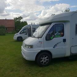Die Leute hier kommen von überall her. Estland, Lettland, Norwegen, Finnland, Deutschland, den Niederlanden, auch Engländer sind dabei. Witzig sind die verschiedenen Gewohnheiten der Camper. Die Finnen zum Beispiel verwandeln ihre Stellplätze binnen Kurzem in ein Zuhause indem sie es abzäunen und Hängeranien an ihren Vordächern aufbringen.