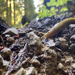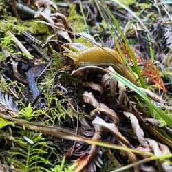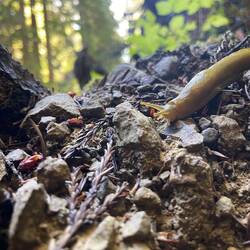 Today we rose above the Bluff on the ecological staircase back in time. I think the same banana slug was there to follow us on this epic journey in time and foliage.
