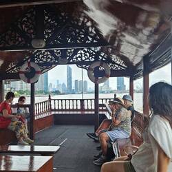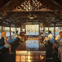 Wir nehmen uns ein TukTuk und fahren zum Lucky Buddha, dem Marble Templ, zum Export Market, dem Fashion Center und zum Wat Pho. Unser Fahrer nimmt es gelassen, als wir etwas länger für die Besichtigung brauchen. Insbesondere lässt er uns viel Zeit bei den beiden "eingeschobenen" Shopping Terminen. Das Export Center ist ein Juwelier für Schmucksteine aus Thailand , auch für den berühmten Blue Saphir (Cartier u.a. Luxusmarken). Das Fashion Center möchte, dass man wie "Pantau" oder "Cinderella" das Modegeschäft verlässt; das ist nicht so unser Ding. Nach "nur 3 Stunden" erreichen wir wieder den Pier. 50 Baht oder 1,5 Euro kostete die gesamte Tour. Geld verdienen die TukTuk Fahrer eher über die Verkaufsprovisionen bei den "eingeschobenen" Terminen.