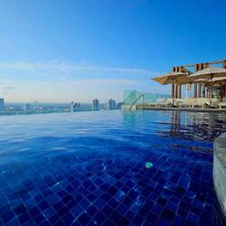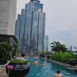 9:00 Schwimmen im Infinity Pool mit großartigem Blick über Bangkok.