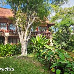 Verlässt man die Hauptstraße, wird es sofort ruhig; überall werden Villas und Apartments angeboten. Tempel stehen überall. Jede Familie (alle Lebenden des Stammbaums) besitzt einen Tempel, und jeweils ein Hund beschützt eine Familie. Hunde laufen überall (! liebe Rollerfahrer!) frei herum, sie liegen oft einfach so auf den Straßen. Angst haben sie nicht. Wir sind schon ungewollt einem Hund fast über die Pfoten gerollt, den Hund hat das nicht gestört....