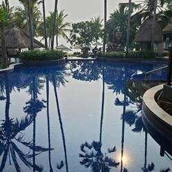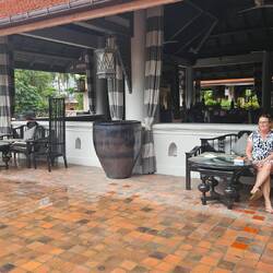 Wir sind in einem tollen Resort hier in Hua Hin, aber 5 km vom Zentrum entfernt. Das ANANTARA HUA HIN RESORT & SPA liegt direkt am Meer und zeichnet sich durch eine traumhafte Anlage aus. Der Garten des Hotels ist ca. 500m lang und rund 80 m breit! Ein sehr großer Pool, in dem wir täglich zwischen 7 und 8 a.m. unsere Bahnen ziehen und einen idyllisch gelegenen Pool für Suiten Gäste integriert in einer Lagune. Traumhaft. Hier machen wir morgens Yoga und Stretching.
