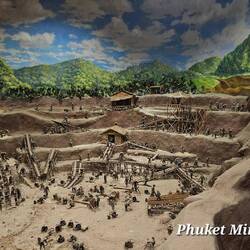 Auf unserem Weg nach Phuket Downtown besuchen wir das Mining Museum Phuket. Keine Schlange beim Ticketkauf und auch sonst werden wir nicht von anderen bedrängt. Ganz im Gegenteil, wir sind mutterseelenalleine. Das Haus, in dem die Eintrittstickets verkauft werden, ist das alte Verwaltungsgebäude der Zinnmine im Siam-Portugiesischen Baustil, weshalb wir "herrschaftlichlich" empfangen werden. Die Ausstellung war 2007 eröffnet worden und zeigt sehr verspielt und detailverliebt die Geschichte der dortigen Zinngewinnung. Ohne die Zinnvorkommen wäre Phuket heute nicht das multikulti Phuket was es ist, denn mit der früheren Zinngewinnung waren Chinesen und Arbeiter aus den umliegenden Ländern als Minenarbeiter gekommen. Diese kulturelle Vielfalt ist bis heute lebendig. Auch wenn man zur Thai Massage geht; plötzlich wird es eine Cinesische Knochenbrecher Massage. Deshalb, immer die Augen auf bei Wahl der Massage.
