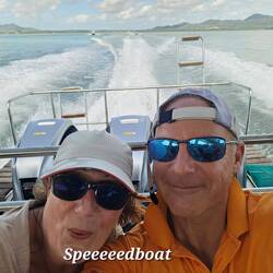 Nach weiteren Bade- und Inselstopps laufen wir um 5.30 p.m. wieder in die Marina ein. Nicht ohne Erwähnung, dass wir die letzten km unserer 100 km Rundreise mit 70 km/h über das türkis farbene Wasser geglitten sind; in dem bepfahlten Fahrwasser gings im Slalom!! mit Vollgas durch die Kurven. In den Krängungen ging die Speed auf 65,km/h runter, um dann wieder bei 6.300 U/min aufzubrüllen. Für uns endet abends bei einem Cocktail ein wunderbarer Tag.