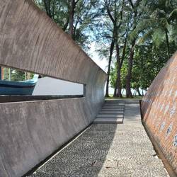 TSUNAMI MEMORIAL CENTRE. ThyssenKrupp hat das Denkmal finanziert. Man kommt dahergefahren, man geht zum Denkmal, man wird emotional gepackt! Namensschilder von Familien aus allen Ländern, aus Deutschland, aus Australien.... Das türkis farbene Wasser und die Thailändische Sonne sind für Minuten verschwunden. Andacht! Nach rund 50 m kommt man aus der symbolisieren Welle heraus. Wir brauchten eine gute halbe Stunde, um das Gesehene zu verarbeiten.