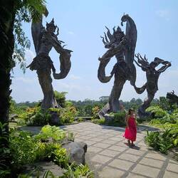 Wir fühlen Bali. Selamat pagi Bali. Was macht den Reiz von Bali aus? Es ist die Insel der Götter. Es ist die Kultur, die sich an und in jedem Gebäude mit wundervollen, blumigen Wandbildern meist aus Beton zeigt. Es sind die vielen Hindu- Schreine und die vielen geschmückten Figuren jeder Art, es sind die bunten balinesischen Schirmchen, mit denen viele Figuren geziert sind, es sind die feundlichen Menschen (ausgenommen die Taxifahrer :-)), es sind die tropischen Wälder und Pflanzen und die Mischung aus all' dem. Anders, als was man kennt. Es versetzt einen ins Träumerische.