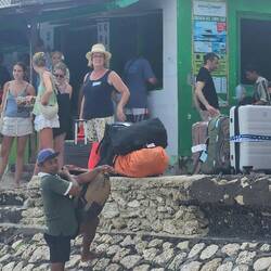 In YouTube gibt es viele Videos von "Aussteigern", die die Landung mit dem Speedboat auf NUSA LEMBOGAN zeigen. Klar, wo muss man bei der Ankunft die Fähre durch das Wasser watend verlassen? Das gibt es kaum noch und wer macht so 'was schon.... WIR machen das! Gedanken machten wir uns zuvor nur über unsere Koffer. 2 mal 25 kg schwer. Positives Denken hilft grundsätzlich im Leben und wie heißt es in Köln, "Et es wie et es", "Et kütt wie et kütt" un "Et hätt noch immer jot jejange". Also!