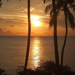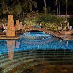 Wir haben heute etwas zu feiern, weshalb wir unseren Nachmittag bei Cocktails an der Pool Bar verbringen und abends ein arrangiertes Thai Dinner Menü in einem "Separee" unter fast Vollmond Licht genießen. Traumhaft.