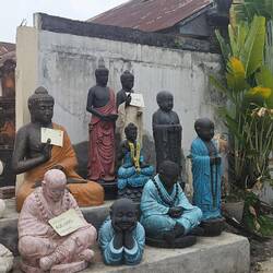 UBUD ist die Kulturstätte Balis. Tempel, Künstler, Handwerkskünstler, Reisfelder am Ende jeder Straße. Wir laufen durch eine der Hauptstraßen von UBUD. Snapshot: Mopeds, Roller, Motorräder, Autos. Abgase hängen in der Luft. Einige Mopedfahrer tragen Corona Masken. Gegen die eigenen Abgase? Ein Gedränge, dass man erlebt haben muss, denn es ist unbeschreiblich. Der Verkehrsfluss ist wie ein Glaubensbekenntnis: Ich glaube, der lässt mich vorbei, ich glaube, der Entgegenkommende bremst schon..... Das Überholen im Gegenverkehr ist nämlich die einzige Möglichkeit für Zweiräder zum Überholen. Die Straßen sind eng, das Verkehrsaufkommen der Infrastruktur überhaupt nicht gewachsen. Einmal kickt ein kräftiger Nicht-Asiate auf einem großen Roller fahrend einem Lokalen den linken Außenspiegel Weg; mit Absicht! Versuchst Du zwischen Bordstein und Auto zu überholen, wirst Du einfach eingeklemmt. Als Fußgänger bist Du verloren. Fußwege gibt es zwar, aber fehlende Kanaldeckel oder die Höhenunterschiede von 30 - 40 cm zwischen Einfahrten und normalen Gehwegen machen den Spaziergang zum Hürdenlauf. Man muss die Straße benutzen! Und da sind dann die Roller....