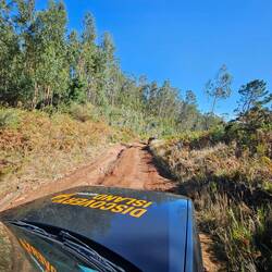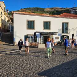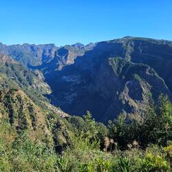3. Wir haben eine 4×4 Offroad Tour gebucht. VITOS, unser Fahrer, der mit der Frage nach seinem Führerschein nichts anfangen kann, spricht perfekt Englisch. Er arbeitet den ersten Tag bei dem Offroad Veranstalter. Er freut sich auf seine erste Ausfahrt. Wir auch? Die Fahrt entlang der Hauptstraße, immer hinter dem vorfahrenden Land Rover, klappt schon ganz gut. Erstes Ziel ist das Fischerdorf Cãmaro do Lebos. Winston Churchill unterzeichnete hier vor vielen Jahren einen Friedensvertrag. Seither lebt das Dorf von dieser einen Unterschrift. Es geht weiter in die Berge! Durch super kleine Straßen geht es 30 Minuten bergauf. Der Gegenverkehr muss warten. Wir sind stärker 😉. Aber international gilt ja, dass Bergfahrt vor Talfahrt geht. Wenigstens das hat man Vitos bei der Einführung wohl erklärt. Es geht hinauf zum Aussichtspunkt "Nonnental ". Historische Details kann man überall nachlesen. Die Aussicht bei klarer Sicht und kühlen 17 Grad in den Bergen ist beeindruckend. Es wird spannend. Ab in den Wald. Über tief ausgespülte Waldwege geht es bergab. Vitos erklärt die Vegetation. Bis 300m Höhe wachsen Bananen. 20.000 to werden jährlich geerntet und auf dem Festland verkauft. Die Einhaltung von EU Normen umgeht man so. Darüber findet man Weinfelder, weiter oben findet man 🍒 . Die Wurzeln der Eukalyptus Bäume sichern auf der Insel den Walboden gegen Erosion. Nachteil der Eukalyptus Bäume sind deren Tendenz sehr schnell Feuer zu fangen. Wir sehen die extremen Spuren des letzten Waldbrandes vor 14 Tagen. Zwei bis drei Monate später wird man hier wieder Grün finden. Vitos erzählt und erzählt und lächelt dabei die auf der Rücksitzen sitzenden Damen an. Schwupps..... der Wagen bekommt Schlagseite, der Land Rover steht in der Böschung. Der Waldweg ist gefühlt nur noch 60 cm vom Kopf des Beifahrers entfernt. Vitos schafft es irgendwie den Wagen abzufangen. Wow. Danach geht es langsam weiter.