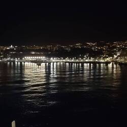 5. Der Kapitän kündigt ein Wendemanöver an. Man soll liegen bleiben oder sich setzen, es wird wackeln. Mit allem was das Schiff kann dreht die Luna über backbord. Ja, es wackelt, aber nicht so sehr, wie man hätte erwarten müssen. Die Wellen mehr und mehr parallel zum Schiff ankommend zu sehen, flößt mir "höchsten Respekt" ein. Wow. Das Schiff hält viel aus. Die Wellenberge mit ca. 6-7 Meter Höhe heben die Luna rhythmisch an. Nach dem Manöver gibt der Captain grünes Licht. Ab jetzt schaukeln wir mit der Welle Richtung La Coruna um gegen Mitternacht wieder auf den richtigen Kurs nach Lissabon zu steuern.