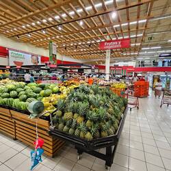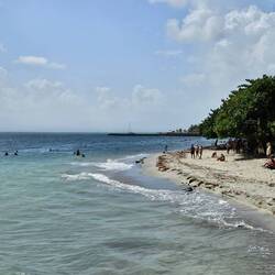 2. Wir gehen direkt nach der Schiffsfreigabe von Bord. Neben dem Terminal ist eine clubartige Poolanlage mit vielen Liegen und sogar einem Sandstrand. Damit ist auch unsere Nachmittagsaktivität schon definiert. Beim Verlassen des Terminalbereichs fallen uns ein paar nette Polizisten auf, die uns ungefragt den Weg in die Stadt weisen. Vorbei an einem Baseball Feld gehen wir über die Brücke in Richtung eines Wochenmartktes JUMBO. Hier wollen wir etwas Lokales einkaufen und brauchen dazu Peso. Der ATM schluckt die Master Card und gibt uns im Gegenzug für 40 Euro 2.000 Perso. Wir schsuen uns die Angebote und die Menschen an, was und wie sie hier einkaufen. Große Einkaufswagen werden zügig durch die breiten Gassen geschoben, es werden große Mengen eingekauft. An der Kasse wird alles in Papiertüten verpackt. Sehr amerikanisch. Wir kaufen uns Konditor-Waffeln aus der Auslage, denn die Süßwaren sind offensichtlich etwas, was die Einheimischen lieben. Große, 50 cm im Durchmesser messende Torten stehen in Mengen zur Abholung bereit. Und jede Menge handgefertigte Waffeln und Hörnchen. Unsere Waffeln halten gerde mal 50m. So etwas Leckeres gibt es bei uns zuhause glücklicherweise nicht. Für jede einzelne Waffel müsste man nämlich ein paar Kilometer joggen gehen. Weiter geht es durch die Straßen von La Romana über den Parque Central Duarte und in die Straßen dahinter. Es ist heiß in der Stadt. Die vielen Mopeds in der Stadt machen ordentlich Krach. Es sind 50er; 100 und max 200 ccm Mopeds. Fast wie vor 40 Jahren bei uns zuhause. :-). Hier und da Polizisten, die uns unseren Weg weisen. Wir wollen noch etwas lokaltypisches erleben und gehen mittags zum "Pollo Rodriguez". Wir bestellen etwas von der heißen Theke; so, wie es alle hier machen. Das (ganze) Hähnchen wird mit gezielten Schnitten ruckzuck zerlegt. Aber nicht in 2 oder 4 Teile, nein, das Hähnchen ist fast nicht mehr zu erkennen. Sieht fast aus wie pulled pork an Knochen. Wir bestellen ein halbes Hähnchen mit einem Gemüsepotpouri. Hähnchen ist hier das Essen für jedermann. 2,70 Euro kostet unser Menü. Es schmeckt ok. Wir stellen unser Tablett in den Rückgabe Container und irgendwelche Hände greifen die Hähnchen Reste.... ein hungriger Mann hatte uns wohl beobachtet. Wir haben überlegt, ein weiteres Menü zu bestellen, um es einfach auf den Tisch zu stellen.....