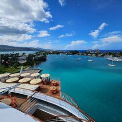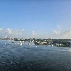 2. Schon sehr früh morgens stehen wir an Deck 12 und beobachten die Passage der Insel BARBUDA und erleben die ganz besondere Atmosphäre auf der Luna nach der "geschafften" Transatlantik Überquerung. Wir haben unseren Teil dazu beigetragen: Sport, genussvolle Ernährung, gute Unterhaltungen und abendlichen Tanz.