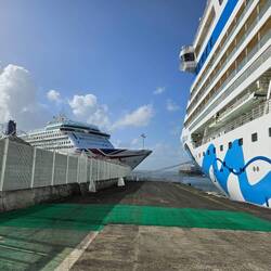 Als drittes Schiff legen wir morgens gegen 8 Uhr in St. John's an, und schon während des Anlegemanövers höhren wir die Raggea Musik, mit der uns Antigua willkommen heißt.