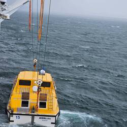 Heute sollten wir tendern..... aber am Ende ist der Wind so stark, dass "der !montierte! Anker nicht hält", so der Kapitän der Luna. Nach ca 40 Minuten nach der vorhergesagten Ankunfzszeit beendet der Kapitän das Manöver. Wir hatten das Ausbringen des ersten Tenders beobachtet und fanden den Wellengang heftig. Beim Einholen des Tenders kam es zu Problemen. Der Skipper des Tenderbootes konnte das Tenderboot erst nach einigen Anläufen erfolgreich festmachen. Gut, dass es kein Seenotfall war! Das hat uns wiedereinmal gezeigt, dass man endlich wieder zu echten Rettungsübungen für die Passagiere übergehen muss. Heute muss man sich nur ein Video Filmchen in der Kabine vor dem Ablegen des Schiffes im TV ansehen und 5 einfache Fragen beantworten. Das macht man, damit man die behinderten Gäste an Bord nicht verärgert. Denn sonst müssten alle Gäste mit montierter Schwimmweste in einer vorgeschriebenen Zeit an der Rettungsstation sein. Das ist kein Seemannsgarn. Das war die Erklärung eines Crewmitgliedes.Læs mere