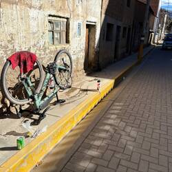 Bereits gegen 14:00 bin ich an meinem Tagesziel, der Kleinstadt Ichuña angekommen und konnte nach einer warmen Dusche mein Rad in der Sonne vom Sand befreien. ☀️