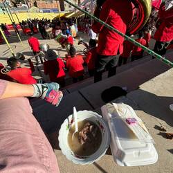 Also habe ich mich auf den Weg gemacht und bin schnell am großen Festplatz rausgekommen - alle Leute schick angezogen. Als ich mich auf die Tribüne gesetzt habe, wurde mir gesagt, dass es sich bei diesem großen Fest um eine Hochzeit handelt. Da musste ich grinsen, denn alles hier war anders als bei einer deutschen Hochzeit: