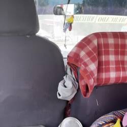 Losgekommen sind wir dann doch erst, als es schon dunkel war. Nach ca. 2km wurden wir von einem Auto mit einer besorgten Frau angehalten. Sie meinte es sei viel zu gefährlich, diese Straßen bei Nacht mit den Rädern und dem vielen Gepäck zu fahren. Warum denn Larissa so große Taschen dabei hat? Nachdem ich ihr kurz von unserer Reise erzählt habe, hat sie ihre Tochter angerufen und gemeinsam mit ihr ein Taxi angehalten, das uns zu unserer Unterkunft gebracht hat: ein Fahrrad innen rein, ein Fahrrad aufs Dach.