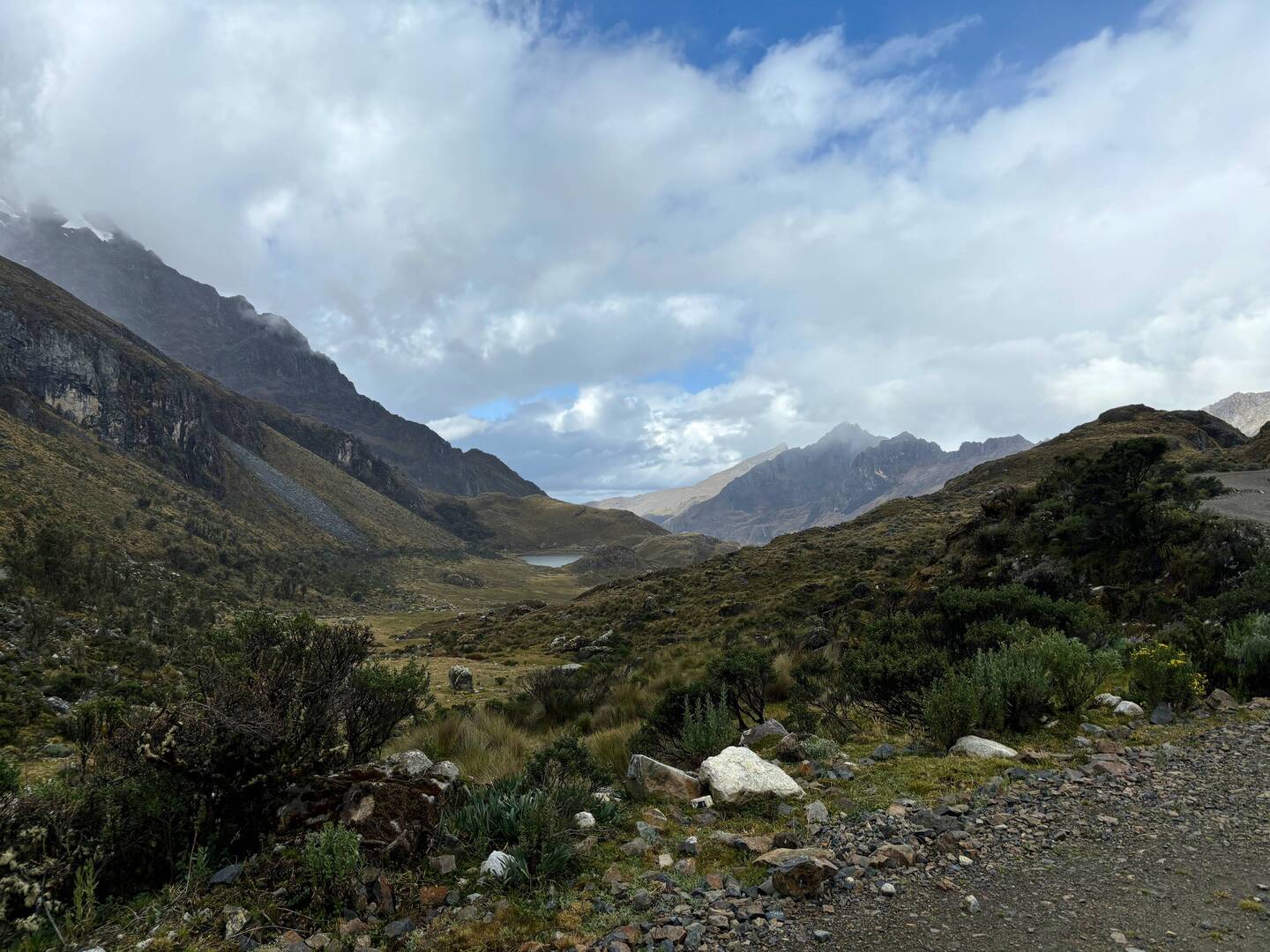 Nach einigen Minuten sind wir auf eine Mauer gestoßen, die aus Protest gegen die Minen von den Einheimischen gebaut wurde. Unsere Fahrräder waren schnell auf der anderen Seite. Anders sah es für den Motorrad-Reisenden aus, den wir kurz vorher getroffen haben. Gemeinsam mit 5 Peruanern haben wir die 200kg schwere Maschine gerade so über die Mauer bekommen. Danach hatten wir alle ein richtiges Grinsen im Gesicht und eine unglaubliche Aussicht auf schneebedeckte Gipfel. ☺️🏔️