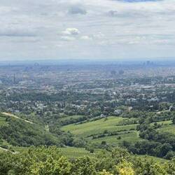 Hüt Morge send mehr mit em Hop in Hop of Bus 🚍 zum Husberg vo de Wiener em Kahlenberg ca 400 m gfahre. Tolli Ussicht uf Stadt Wien u Donau mit emene Stück Käsekuchen.