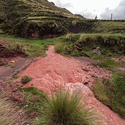 Der Weg runter war dann auch viel einfacher. Allerdings kamen uns auf dem Weg dann die Massen an Touristen entgegen, die ausschlafen wollten und sich deshalb dicht an dicht den Berg hoch zwängten. Teilweise mussten sie auf Pferden hochgetragen werden, teilweise mit Sauerstoffflaschen beatmet werden. Ein sehr skurriles und erschreckendes Bild! Zum Glück waren wir schon ohne diese Menschen oben auf dem Berg! Auf dem Rückweg nach Cusco haben wir noch einen Stop am roten Fluss gemacht.