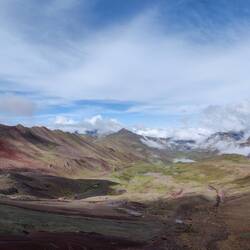 Als wir auf 4600 Metern angekommen waren, klarte der Himmel ein bisschen auf. Wir waren jetzt noch motivierter, die 400 Höhenmeter zu schaffen, um den Rainbow Mountain Vinicunca zu sehen.