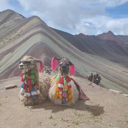 Am Abend sind wir früh schlafen gegangen, denn am 3.1 wurden wir um 03:00 Uhr nachts abgeholt - es ging los zu den bekannten Rainbow Mountains. Wir haben uns sehr gefreut, aber waren auch echt skeptisch, ob wir die Berge überhaupt sehen. Da in Peru gerade Regenzeit ist, stehen die Chancen nicht ganz so gut.