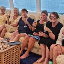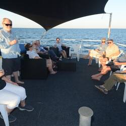 After a leisurely day on the boat travelling along the coast, we were treated to a brilliant sunset, a scrumptious cheese board and drinks on the back deck.