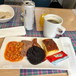 Die nächste Nacht verbringen wir im Calefonian Sleeper, der uns von London nach Glasgow bringen soll. In der Lounge gibt es Getränke & Snacks und pünktlich um 23:30 Uhr geht es los. Unsere Kabine ist kleiner als gedacht, doch irgendwie wird sich arrangiert. Wir füllen noch schnell unsere Frühstückswünsche aus und kuscheln uns in die Stockbetten. Morgens um 6:30 gibts Frühstück im Speisewagen unter anderem Black Pudding - gebratenes Schweineblut mit Getreide. Ja dann: Mahlzeit!Lue lisää