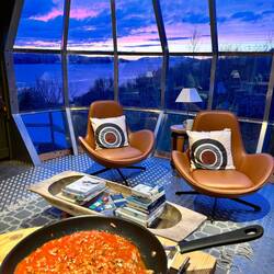 Bewaffnet mit einer Karte wie bei einer Schnitzeljagd begeben wir uns auf den Weg zum Airship - unserem Air B&B für die nächsten 3 Nächte. Der eigentliche Grund unsere Reise, da uns dieses Prachtstück als Werbung bei Air B&B angezeigt wurde. Zur Begrüßung erwartet uns ein ganz toller Brief und sogar ein Geschenk in Form eines Buches über eine Kapitän, der hier gelebt hat. Wir richten uns erst einmal ein, packen die Einkäufe aus und machen uns eine richtig schöne Bolo 🍝. Jetzt beginnt der gemütliche Teil.Lue lisää