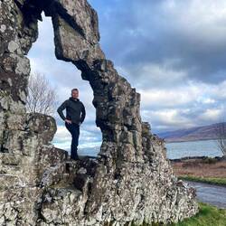 Zur Mittagszeit überrascht uns ein heftiger schottischer Regenschauer. Wir wollten uns eigentlich gemütlich Tobermory anschauen, verziehen uns aber lieber in eine Kirche ⛪️ in der außerdem Lunch serviert und eine Gallery besucht werden kann. Wir nehmen einen schnellen Happs ein und kämpfen uns dann durch den Regen zur Distillery. Dort werden wir unerwartet von einem Haufen angetrunkener Deutscher überrascht, die anscheinend gerade eine Verkostung hinter sich haben. Mit der Fähre geht’s wieder zurück zur Halbinsel Movern, wo wir noch am Wunschstein vorbeikommen. Schafft man es hindurch zu klettern ohne den Stein zu berühren, hat man einen Wunsch frei. Peter schafft es leider nicht und Anki probiert es gar nicht erst 😂aber wir sind ja auch wunschlos glücklich 🙃Lue lisää