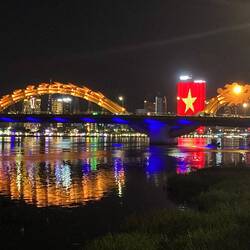 Saturday night is Dragon Bridge night 10 minutes of the Dragon Bridge giving a fire & water display - impressive but quite polluting - lots of black smoke. We sat in a very crowded bar but had aRead more