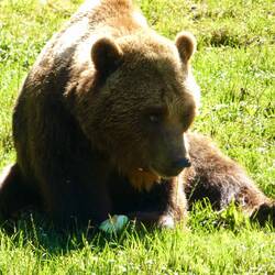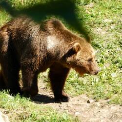Although there are Brown Bears in the valley, this was going to be our most likely sighting at least on this trip! As we arrived at the bear enclosure, the keepers brought what appeared to be frozen cantaloupe melons, which they threw to the 2 bears. The melons bounced and sounded like rocks hitting the ground - which is why we thought they mus have been frozen.