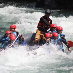 We were in an inflatable raft with a Belgian family and Jaime, our guide and helmsman.